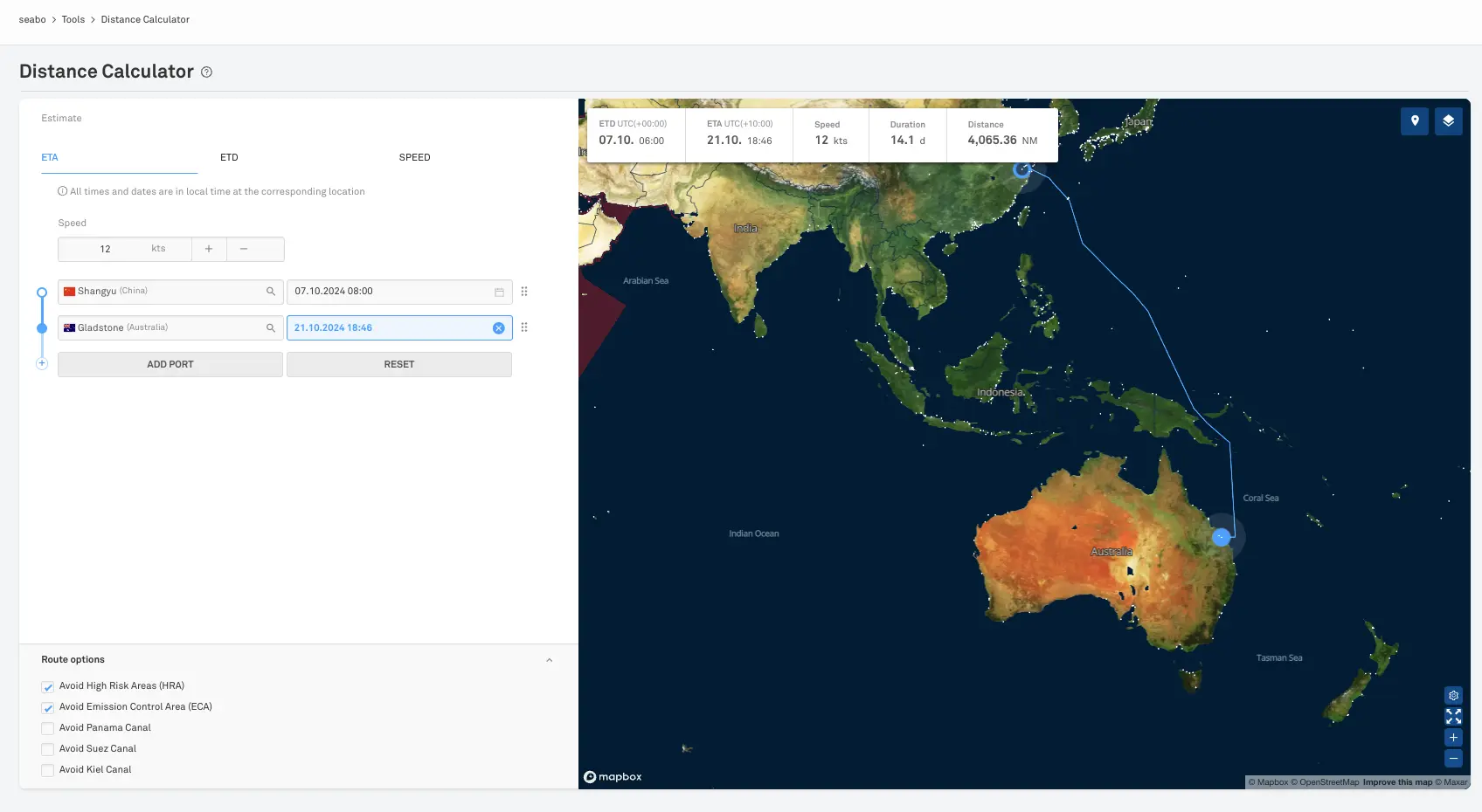 Maximise efficiency with seabo’s unlimited sea distance calculator, enabling quick and effortless distance computations between numerous ports. This fast and effective tool helps optimise routing, allowing you to plan the most efficient and cost-effective paths for your voyages. Simplify your logistics and enhance your operational planning with our precise distance calculations.